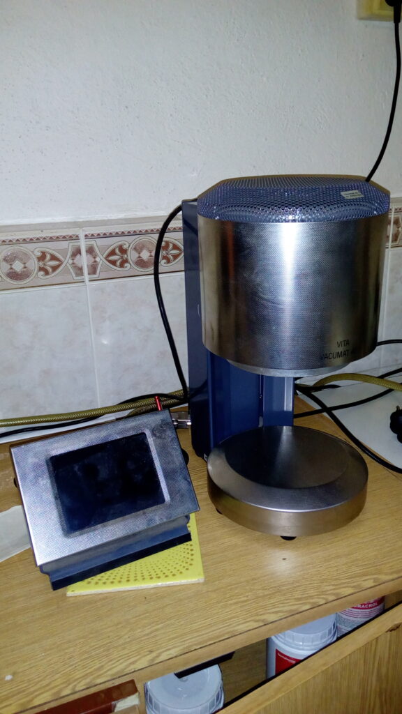 Pieskovač Renfert Basic, Pieskovač Oro, Hydraulický lis,Pec na Keramiku Vita Vakumat T40 ( aj zvyšná keramika Vita VM 13), Artikulátor s tvárovým oblúkom, Orezávač na sadru Renfert MT plus ,Box na brúsenie s ionizátorom, Mikromotor Schick C2 kolenný s tempomatom, Prenosné odsávanie s rozdvojkou Kavo ,Vibrátor, Ostatné náradie a vybavenie na požiadanie.Osobný odber koncom novembra až v decembri.